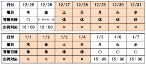 ■ 休暇日程 2025年12月27日(土)~1月4日(日)